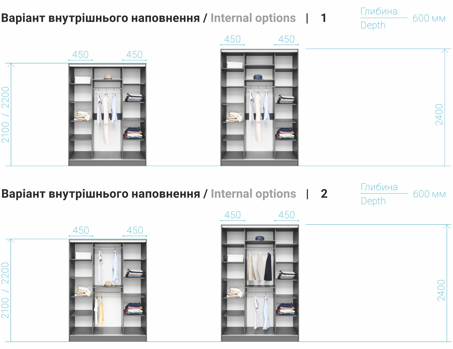 Глибина: 450 мм. / 600 мм.