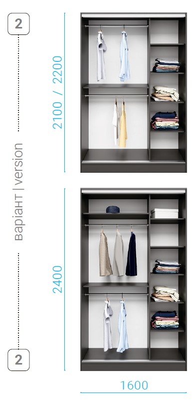 Висота: 2100 мм. / 2200 мм. / 2400 мм.
