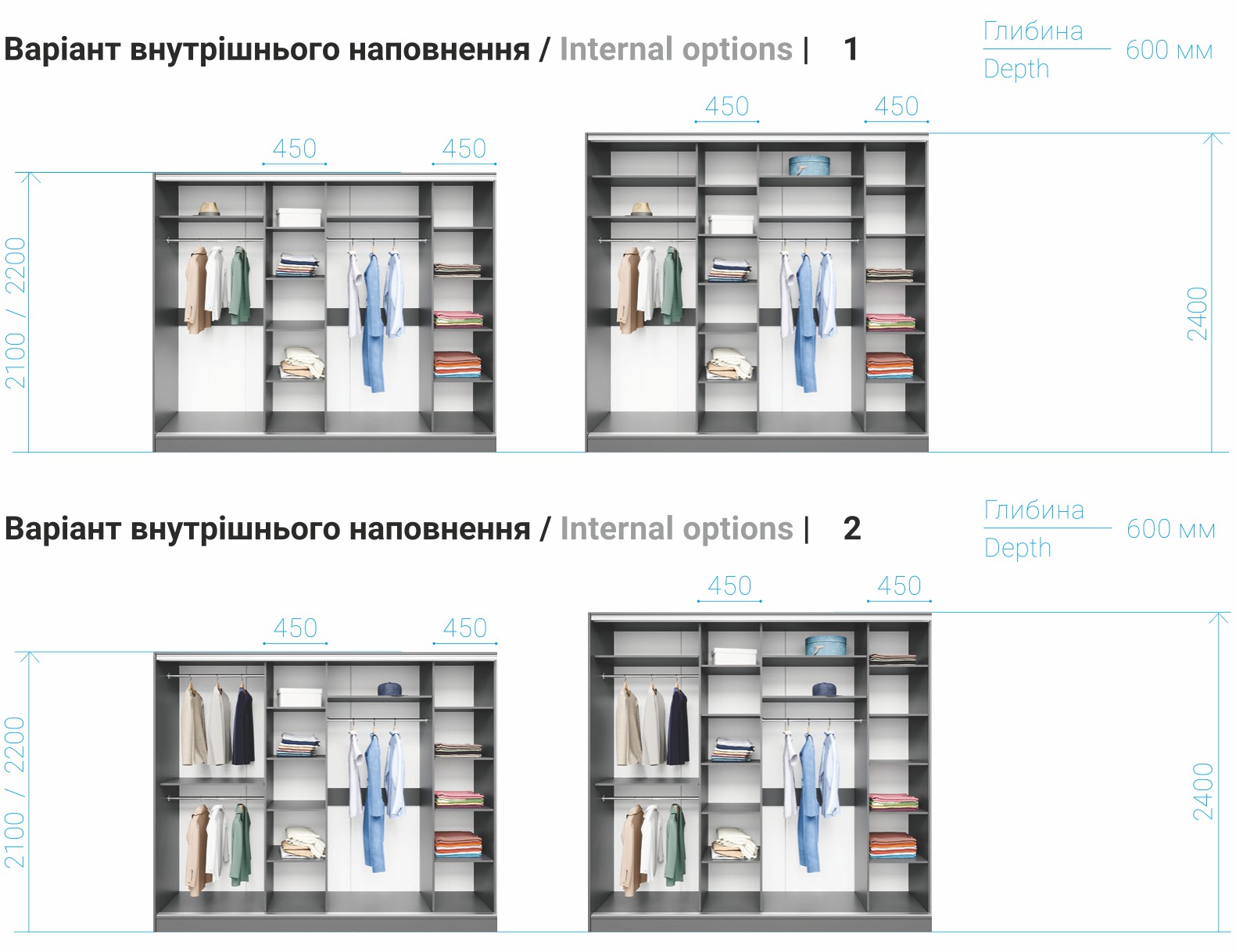 Глибина: 450 мм. / 600 мм.